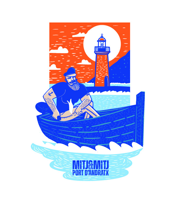 Para este encargo, desarrollé una serie de ilustraciones originales pensadas para serigrafiar sobre sus camisetas y productos textiles. El estilo gráfico debía conectar con el universo del mar, la vida portuaria y el carácter genuino de la isla. Así nació esta colección de marineros con personalidad, líneas contundentes y cierto aire irreverente que conecta con el espíritu libre del proyecto.